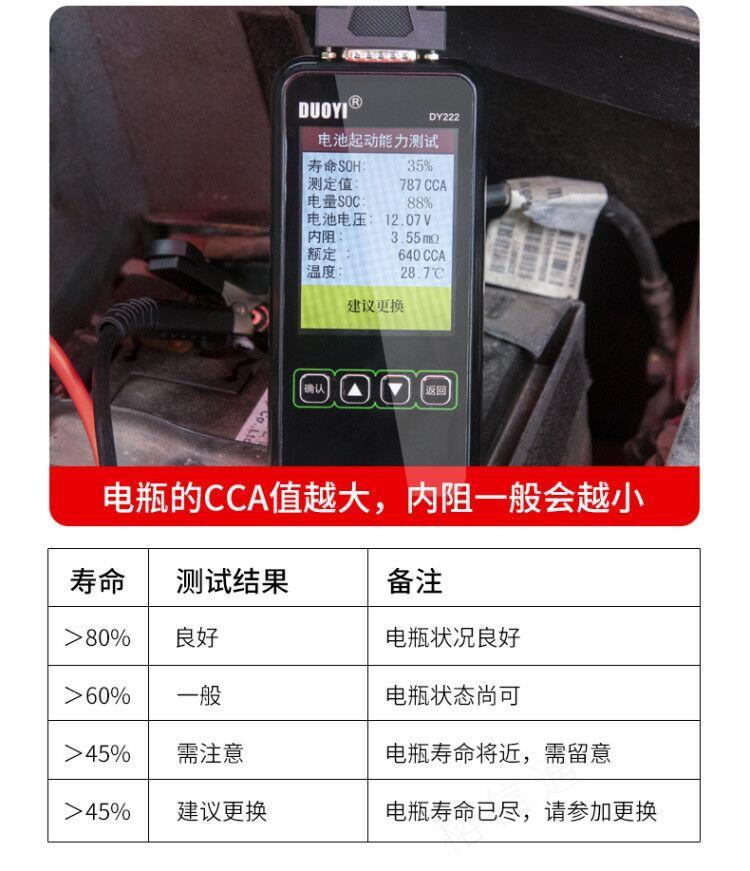 多一DY222蓄电池检测仪蓄电池测试仪电瓶检测仪启动寿命内阻测试