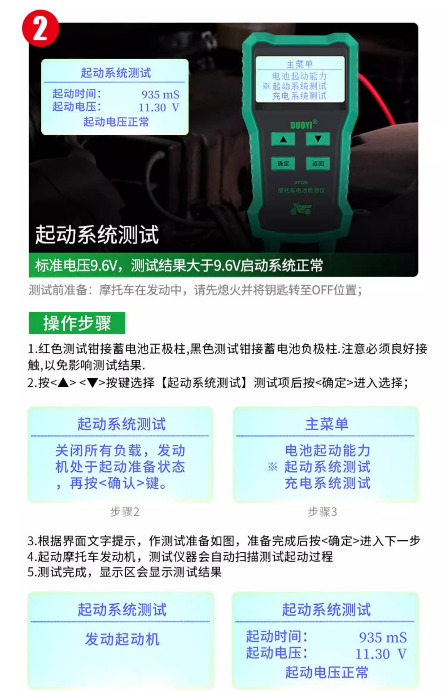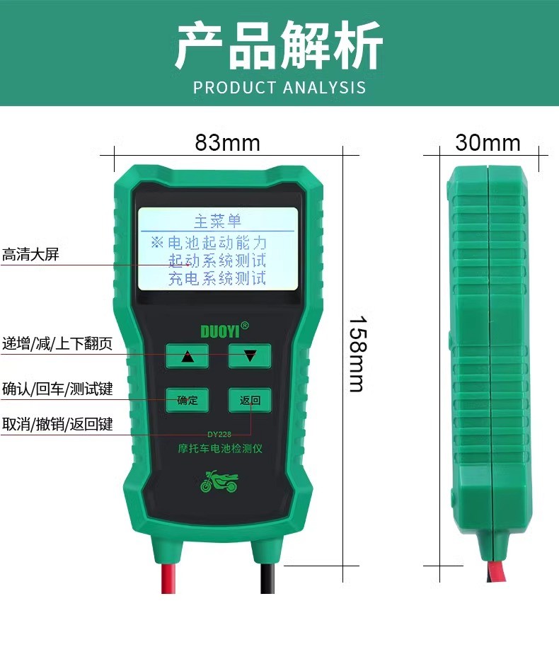 DY228摩托车蓄电池检测仪高精度多功能电瓶检测电池测试仪