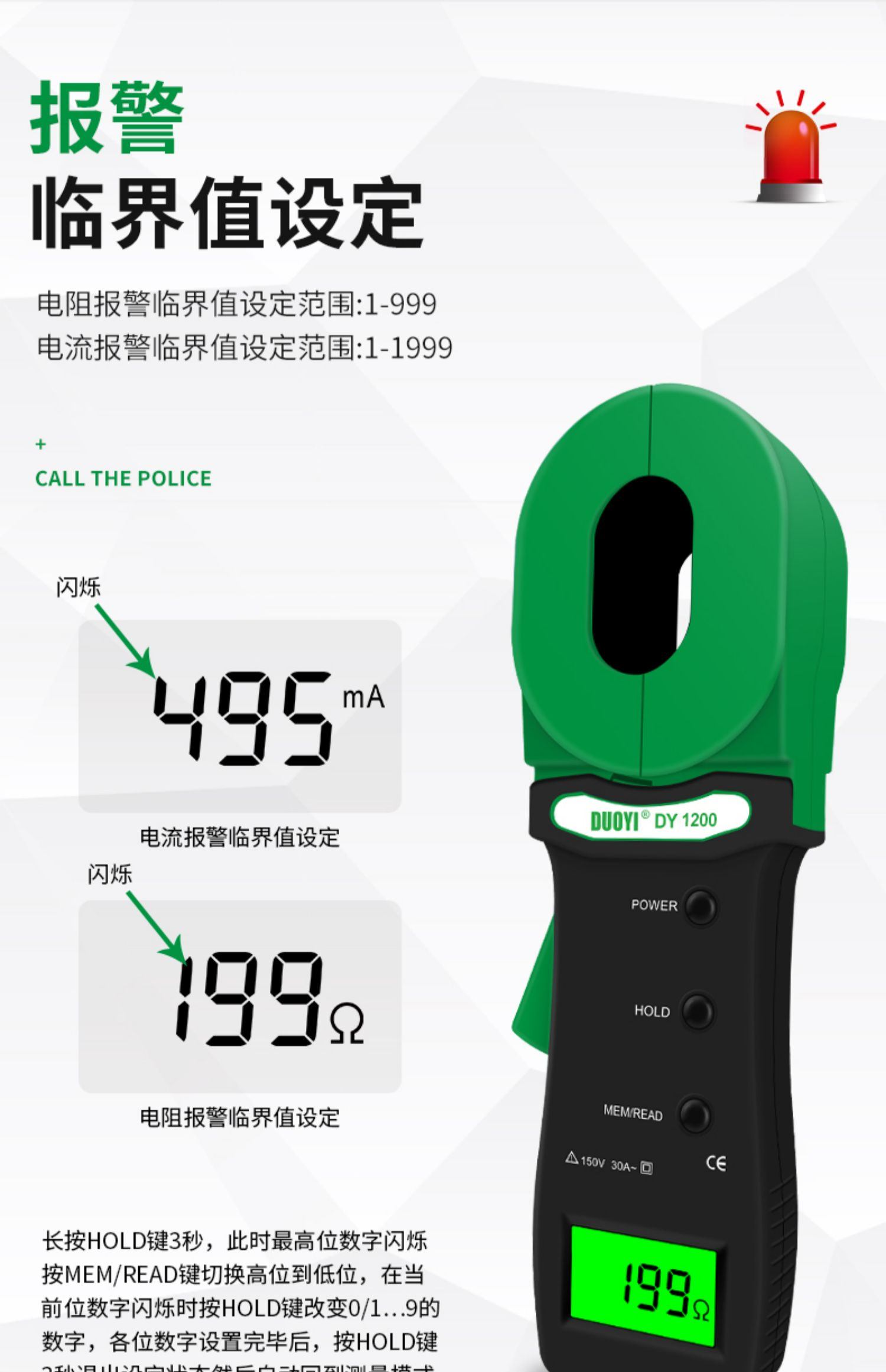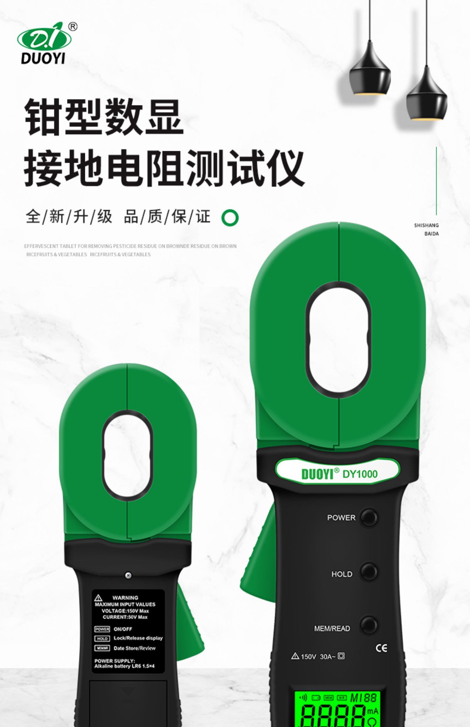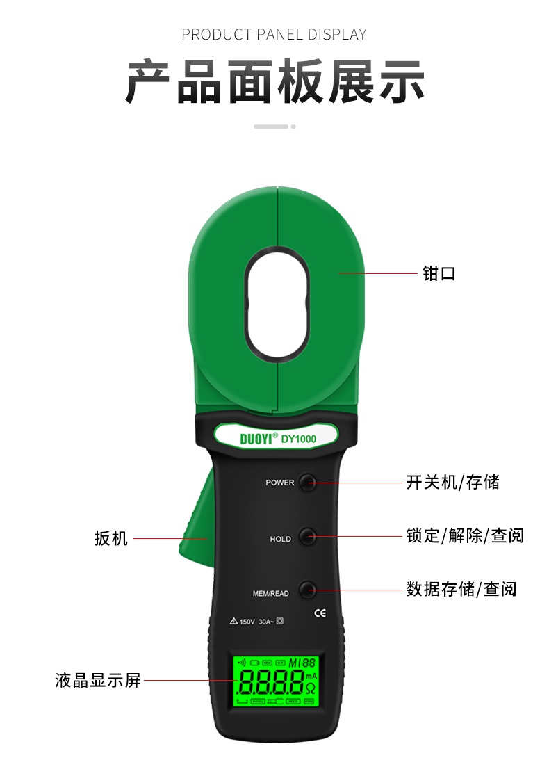DY1000接地电阻测试仪高精度防雷数字测试仪器钳形电力电阻测量仪